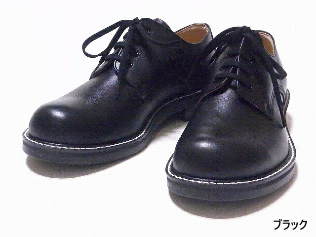 ◆商品説明◆ ドライボーンズ(Dry Bones)のワークシューズ(Utility Work Shoes/ユーティリティーワークシューズ)"DSHC-048/GEORGE"です。 1930年代から存在している代表的なオックスフォードタイプのワークシューズを再現。 某有名ワークシューズブランドのオックスフォードタイプをもとに、日本人に合うよう修正されています。 木型は比較的ゆったりとした形状で、トゥが丸っこくなっていてクラシックな雰囲気。足入れ口は狭い感じに見えますが、大きく下にカーブして裁断されている為、非常にスムーズです。 特筆すべき形状は、この外羽根式のシューレース部分。甲高段広と言われる日本人でもピッタリと中心に合わさる様、独自のパターンを作り上げています。履いてもピッタリと合う外羽根、非常に美しく履く事が出来ます。 アッパーは柔らかなカウレザーながらシボが美しく出るクロム鞣し。履き込むほどに表情が変化していきます。 アッパーのステッチはレザーに合わせた質実剛健なトリプルステッチ。 ソールはコルクソールと呼ばれる1930年代から存在している素材。ラバーにコルクをブレンドする事で、滑りにくくなっています。 ハトメもレザーに合わせて塗装された物を使い、シューレースはクラシックに平紐を使用。 コバには極太ゼロゼロ番手の生成色ステッチが入ります。 ◆メインマテリアル:カウハイド(牛革) ◆ソール:コルクソール ◆カラー:ブラック、ワイン 【サイズの目安(cm)】 サイズ66 1/277 1/288 1/299 1/2 cm--約24.5約25約25.5約26約26.5約27-- ★表示サイズに多少の誤差がある場合がございます。 予めご了承ください。Dry Bones(ドライボーンズ)ユーティリティー ワークシューズDSHC-048 Utility Work Shoes "GEORGE"
