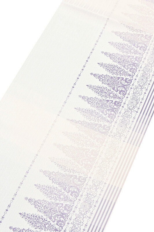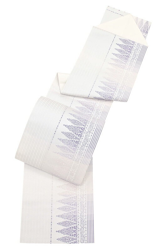 【ショップ評価★5ありがとう♪】着物だいやす 406■八寸名古屋帯■本場筑前博多織 エレガント山路文 更紗 白地×藤色 長尺 ふくよか【正絹】【仕立て上がり帯】【送料無料】【新品】