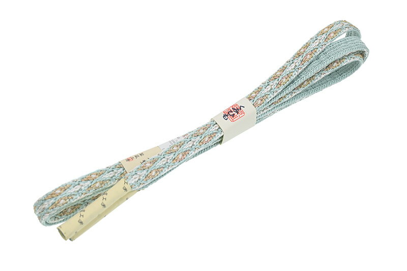 ★ 素材 正絹 (※一部金属糸含む)★ サイズ 幅 約 1.2cm 長さ 約 152cm(房ふくまず)★ 色 水色 ■■■ (小学館発行『色の手帖』参照)<コメント>京都の老舗組紐屋さん翠嵐工房の 帯締め の ご紹介です。すてきな帯締め!きれいな水色の地に立涌のような文が組み上げられた印象的な一品。近くで見ると、ランダムに乱れたような組み目のように見えますが、締めると一定のリズムで文様の表情が感じられ、とっても面白い組み方です。組紐ならではの絹糸の組み目が艶やかで美しい仕上がりです。さりげなく繊細な金糸も組み込まれていて、華を添えています。華やかな雰囲気はまさにフォーマルシーンにぴったりです。かっちりと組み上げられた帯締めは、伸縮性があり、型崩れしにくいのが特徴。ゆるみにくく、締め心地がいいことからお着物通の方にも人気がありますよ。使い心地も抜群。上質なお品物ですので末永くお使い頂ける一本です。この機会にぜにどうぞ♪尚、こちらは店舗「だいやす」でもお取り扱いしております。売り切れの際は、予告なく出品を終了する場合がございますが、どうぞご理解くださいませ。<状態>新品です。 ■ 発送 ■ 【全商品送料無料】【運送会社】ヤマト運輸、日本郵便、佐川急便 ※運送会社はお選びいただけません。 ※お買い上げ合計金額が3,980円(税込)以下の場合はメール便となります。 メール便の場合は配達日時指定ができません。ご了承くださいませ。【梱包方法】 着物 & 帯 :全商品平置き梱包 ※お客様の方で梱包方法や運送会社をご指定の場合は、 別途送料を頂く場合がございます。 ※一万円以下のアウトレット商品、特別SALE価格商品は、 簡易包装となる場合がございます。■ 注意 ■この商品は当店実店舗「だいやす」でも販売しております。 お買い上げいただいた商品が、 品切れになってしまうこともございます。 その場合、お客様には必ず連絡をいたしますが、 万が一入荷予定がない場合は、 キャンセルさせていただく場合もございますことを あらかじめご了承ください。 モニターの発色の具合により、 実際のものと色が異なって見える場合がございます。 ご了承くださいませ。■ SNSやってます♪ ■