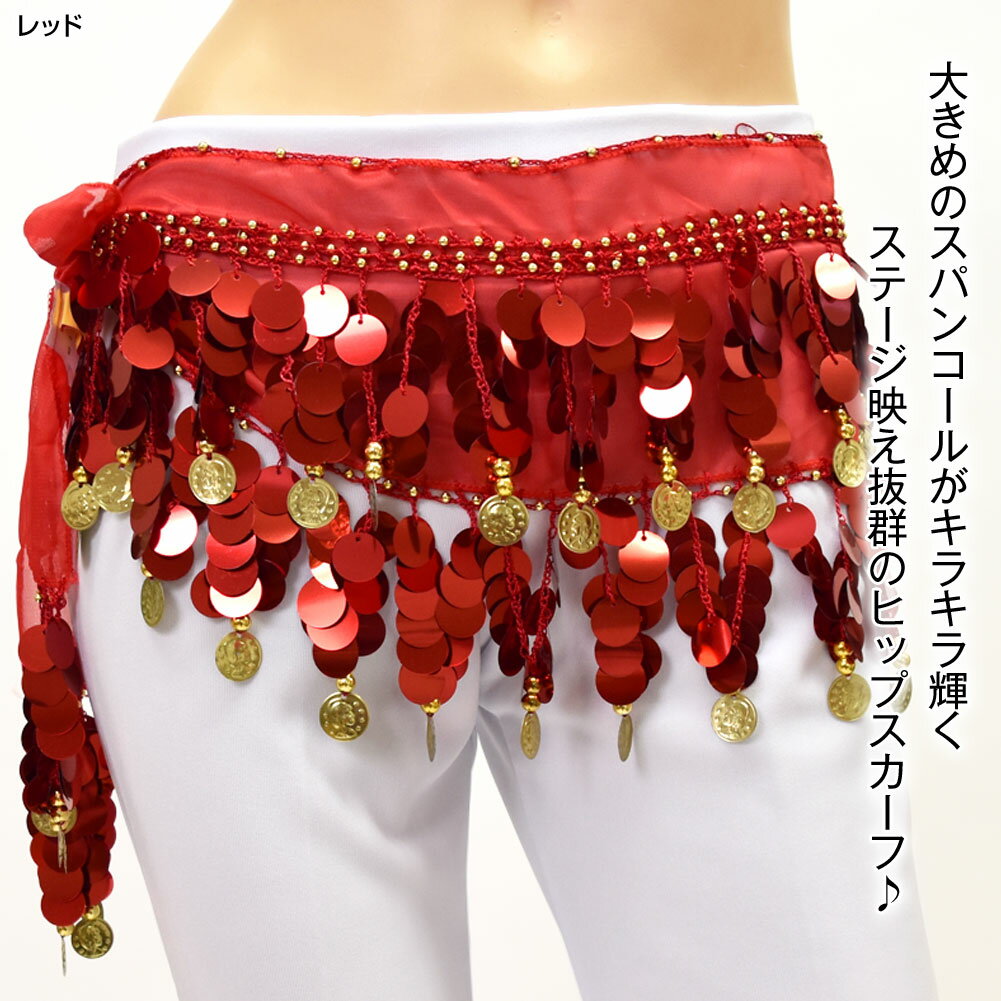 【即納】ベリーダンス ヒップスカーフ コイン付き スパンコール シフォン ヒップスカート ベリーダンス衣装 ダンス衣装 ステージ衣装 コスプレ衣装 ベリー belly dance ベリーダンス レッスンウェア 練習着 レディース /全8色 フリー BC28D40 [M便 2/3]
