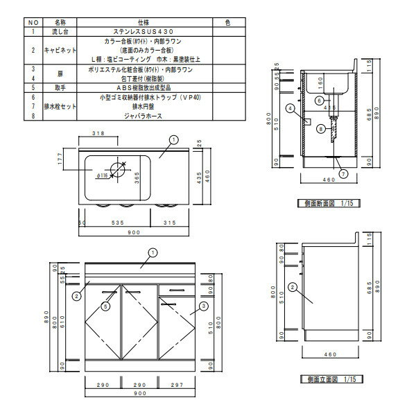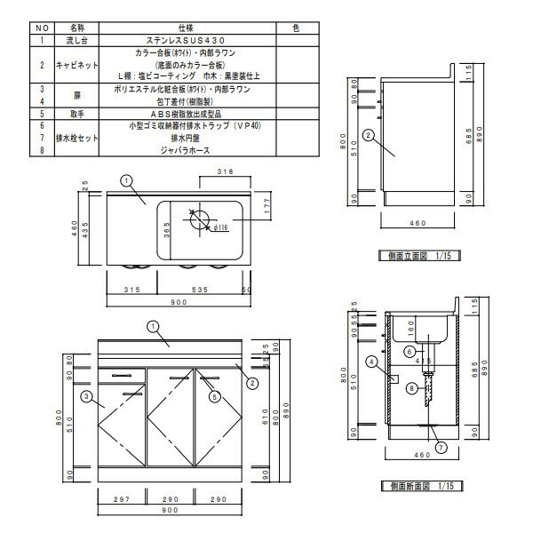 この商品は大阪府限定販売商品です。 ※大阪府内でも一部配送無料対象外地域がございますのでご了承ください。 【サイズ】900x460x800/90mm 【材質】流し台:ステンレスSUS430、キャビネット:両面白化粧パーチ、L棚 塩ビコーティング・巾木 黒塗装仕上、扉:ポリエステル化粧合板(ホワイト)・内部ラワン、包丁差付(樹脂製)、取手:ABS樹脂放出成型品、排水栓セット:小型ゴミ収納器付排水トラップ(VP40)、排水円盤、ジャバラホース ※図面の仕様が誤っている場合があります。ご注意ください。 【発送情報】メーカー直送品です。 こちらの商品は(ドルフィン)からお送りいたします。 ※送料無料エリアはメーカーの自社便にてお届けしています。 方面によってお届け可能日が限られる場合があり、その際はお届け日の調整にご協力をお願いいたします。