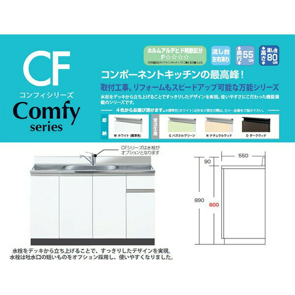 イースタン工業 全槽流し台 Comfy CF2-60S 間口60cm 奥行55cm 高さ80cm キッチン システムキッチン 公団 社宅 市営 県営 UR 住宅 リフォーム