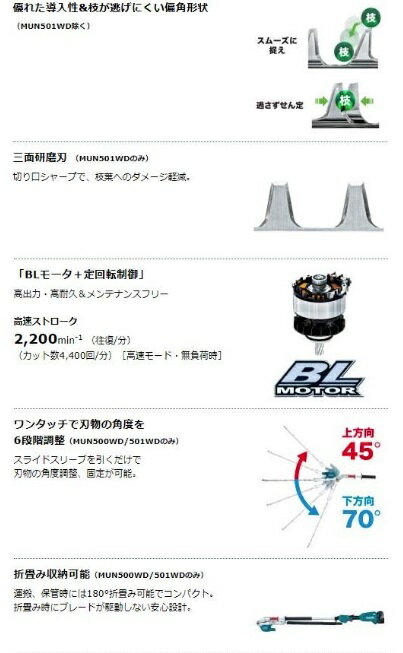 マキタ MUN600LDZ (本体のみ) (バッテリ・充電器別売) 600mm 充電式ポールヘッジトリマ 角度固定 ループハンドル 偏角拝み刃 18V 刈込み幅600mm 最大切断径(mm)φ18 ※樹木の種類により変わる場合があります。 ストローク数(min-1)[往復/分]低速:1000、中速:1800、高速:2200 カット数(min-1)[回/分]低速:2000、中速:3600、高速:4400 電源直流18V 本機寸法(長さ×幅×高さmm)2050×230×178 質量(kg)4.0 標準付属品 ブレードカバー、六角棒スパナ ◆送付先個人名のご注文には、条件がございます(送付先名が法人様・個人事業主様名のみ配送可) ※個人名のみでのご注文は送料別途かかる場合が御座います、御注文前にお問い合わせください。 ※ただし、屋号があれば個人様でも標示の送料にて発送可能です。 ※必ず送付先の氏名欄に会社名・法人名・屋号を記入して下さい。