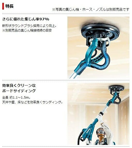 マキタ SL801DRGX (バッテリ2個・充電器・ツールバック付) 充電式ドライウォールサンダ 18V 6.0Ah パッド寸法(mm):φ210 サンディングディスク径(mm):φ225(マジックファスナ式) 本機寸法(mm)(長さ×幅×高さ):1,120〜1,540×278×273 質量(kg)(バッテリ含む):4.8 1充電あたりの作業量(目安):スピード調整ダイヤル3 約42分 標準付属品 サンディングディスク#120・パッド(ソフト)・六角棒スパナ・ツールバッグ・フロントカフス24 ◆送付先個人名のご注文には、条件がございます(送付先名が法人様・個人事業主様名のみ配送可) ※個人名のみでのご注文は送料別途かかる場合が御座います、御注文前にお問い合わせください。 ※ただし、屋号があれば個人様でも標示の送料にて発送可能です。 ※必ず送付先の氏名欄に会社名・法人名・屋号を記入して下さい。