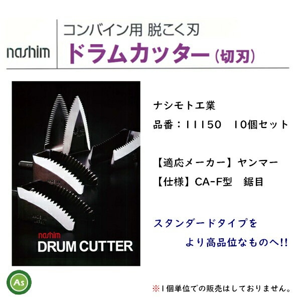 ヤンマー コンバイン用 ワラ切刃 ドラムカッター 10個セット ナシモト工業製 脱こく刃 品番11150