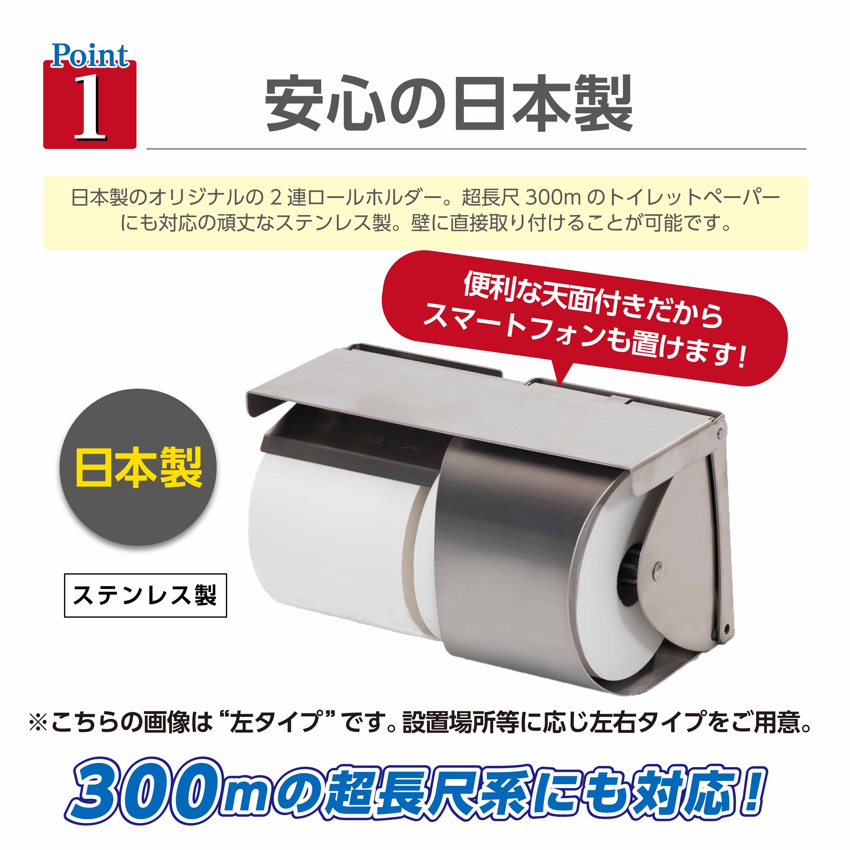 【店内全品P3倍★ブラックフライデー限定】ホルダー 天面付き 2連式 日本製 業務用 マグネット式 鍵付き 天板ありタイプ ステンレス製 超長尺 トイレットペーパー対応 ホルダー 左右タイプあり 太芯 細芯 丸富製紙 公式