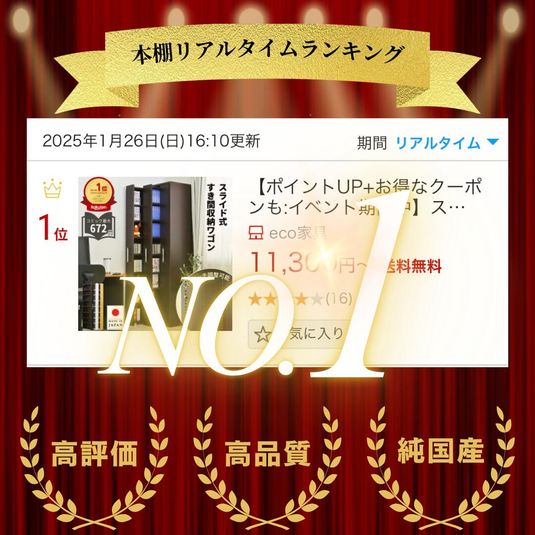 【20%OFF 11月27日1:59迄】国産 スライド式すき間収納ワゴン 高さ180cm 本棚 薄型 大容量 スリム 隙間収納 収納棚 漫画棚 本棚 3列 2列 おしゃれ 書棚 コミック CD DVD キャスター付き マンガ 棚 1cmピッチ 白 茶 薄茶 eco家具 F-591〜