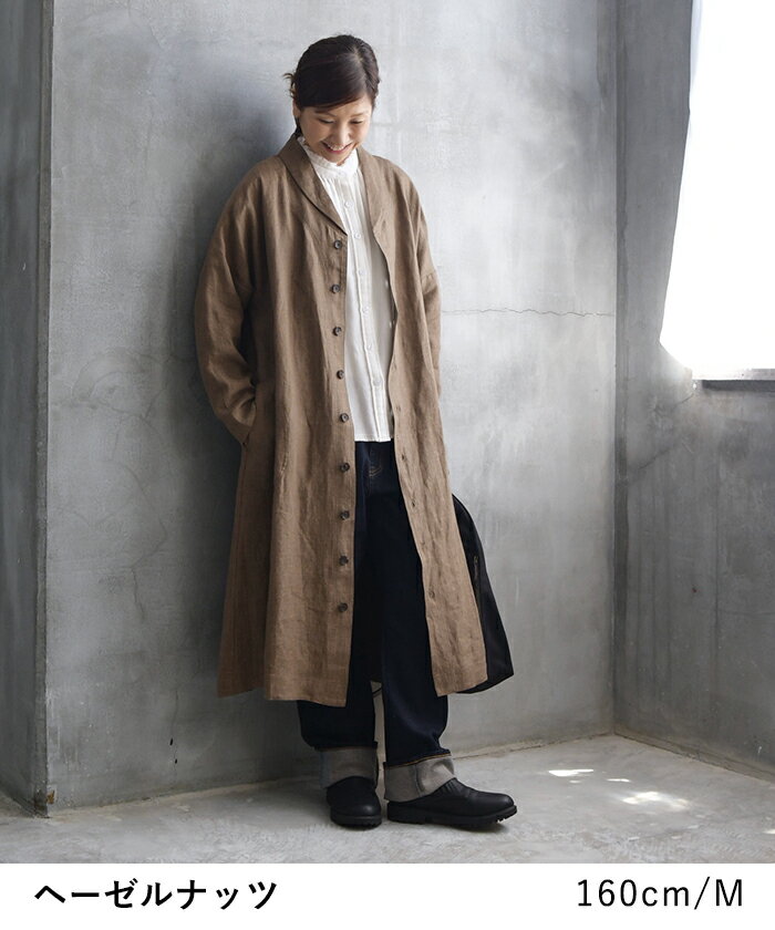 【高評価★4.6】ライトアウター レディース ライトコート へちま衿 大きいサイズ 9番手ヴィンテージリネン 麻100%/ 着後レビューでクーポン☆ ロングコート 羽織り エコロコ e+,/ 春 秋 冬 大きいサイズ 26SS0130R,