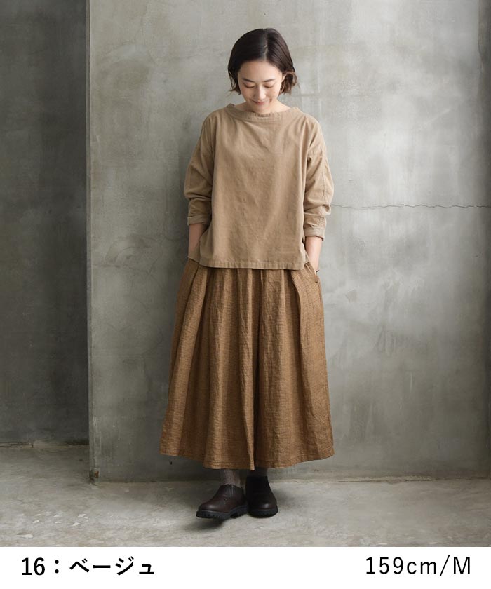 プルオーバー レディース ブラウス シャツ コーデュロイ ボートネック 綿100%/ 着後レビューでクーポン☆ ナチュラル カジュアル トップス エコロコ e+ Ms,Ls,LL,3L, / 秋 冬 秋服 30代 40代 50代 大きいサイズ ベージュ ブラウン 茶色 くすみグリーン 緑 チャコール 灰色 ネイビーグレー 紺 Mサイズ MLサイズ M L フリーサイズ フリー Lサイズ LLサイズ LL 2L 大きいサイズ 大きい 大きめサイズ 大きめ 大き目 大サイズ トール トール丈 高身長 ぽっちゃり プラスサイズ 着痩せ オーバーサイズ 3Lサイズ LLL XXL レディースファッション トレンド 体型カバー 体型 体形 体形カバー 体系 体系カバー お呼ばれ お出かけ 旅行 通勤 通学 着回し 母の日 バレンタイン プレゼント ギフト 贈り物 クリスマス 大人 おとな 大人カジュアル オトナ 女性 大人女子 大人可愛い 女性服 20代 30代 40代 50代 60代 おしゃれ お洒落 オシャレ 可愛い かわいい カワイイ 通年 ロングシーズン えころこ エコロコ ecoloco earth eco loco ekoroko エコロコ服 エコロコショップ【 こちらは、ecolocoのオリジナル商品です 】 earth_eco_loco 「いろいろコーデュロイ」細畝ボートネックプルオーバー ゆったり、楽に。 暖かみのある雰囲気が秋冬にぴったりの、コーデュロイのプルオーバー。 すっぽり楽に着られる、肩落ちのかたち。 首元は、すっきり見える、ボートネック。洗いをかけ、ステッチ部分がくしゅっと、いい雰囲気。 薄手で柔らかい生地なので、重ね着も色々楽しめる1枚です。 製品洗いをかけることで、袖や肩、後ろヨークの切り替え部分など、二重に施されたステッチがくしゅっとして、独特の雰囲気に。 開きすぎず、すっきりきれいに見えるボートネック。少し立たせた幅広のバインダーがアクセントに コーディネート ▼モデルデータ カラーバリエーション ※こちらのカラーが実物に一番近いものとなります。 素材 綿 100% コーデュロイ やわらかな、細畝コーデュロイ くたっとした柔らかさのある、細かな起毛が暖かい風合いの、細い畝でやや軽めのコーデュロイ生地。 [透け感]薄手ですが目の詰まった生地の為、透け感はありません。 ▼洗濯表示について 全サイズ着比べました サイズ表 サイズ M L LL 3L ①着丈 56 57 58 59 ②バスト 116 120 124 130 ③裾幅 62 64 66 69 ④肩幅 - - - - ⑤脇幅 - - - - ⑥袖丈 - - - - ⑦袖口 12 13 14 15 ⑧袖幅 21 22 23 24.5 ⑨裄丈 70 71 72 73 ⑩外天幅 28 28 29 29 ⑪前下がり 5 5 6 6 ※商品により多少の個体差がございますのでご了承ください。 ※裄丈は首中心から袖口までを計測しています。(肩は落ちる形です) ▼当店の採寸方法 サイズ選びのアドバイス 全体的にゆとりを持たせたかたちで、普段のサイズでほどよくゆったりと着られると思います。普段のサイズを基準に、すっきり着たい、ボリュームを出して着たい、などお好みに合わせてサイズダウン・アップしても。サイズ表は、脇幅・バストを中心にチェック。スタッフ着用画像もあわせてご検討ください。 まとめ 商品情報 ブランド earth_eco_loco コットンシリーズ 素材 綿 100% コーデュロイ 生産国 china カラー 16:ベージュ | やや赤みのある、薄めだが落ち着いたベージュ 19:チャコール | ブラウンが混ざったような黄みのあるチャコールグレー 87:くすみグリーン | 青みが強い、やや薄めのトーンのダークグリーン 59:ネイビーグレー | 褪せ感のある、グレイッシュなネイビー ecolocoのオリジナルearth_eco_loco「長い間着られる」「着心地がいい」「着回しができる」がキーワード。天然素材を中心に、6つのシリーズで展開しています。▶ コンセプトを見る ecolocoオリジナル対象。まずはルールを確認>>