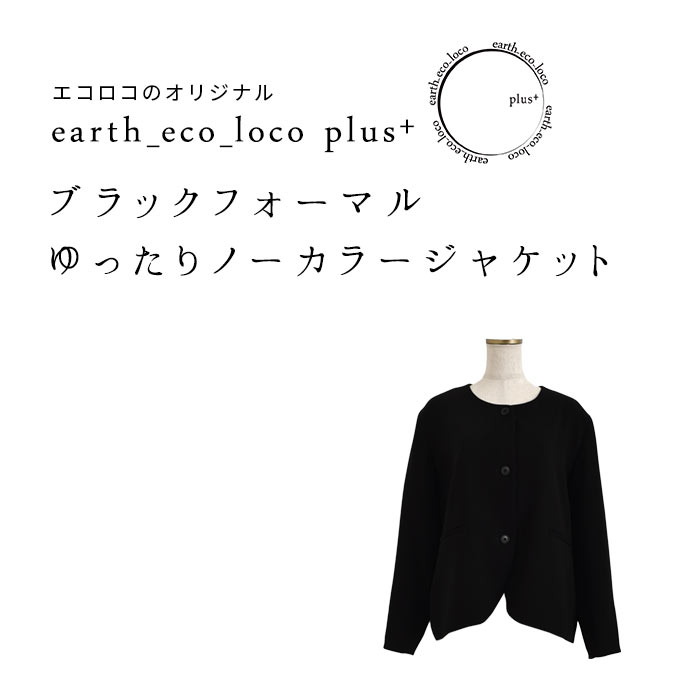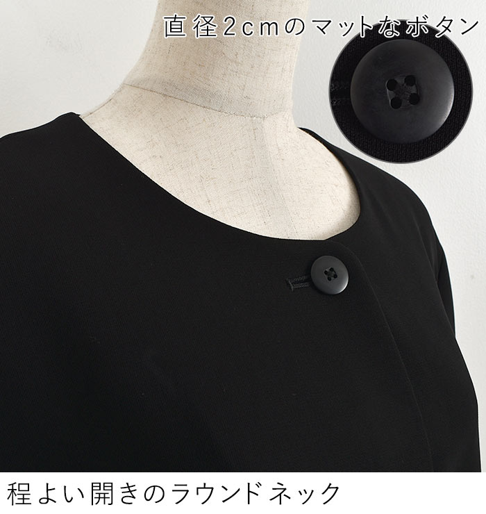 慶弔両用 喪服 ブラックフォーマル レディース ノーカラー 前開き ジャケット/ゆったり スーツ 礼服 葬式 卒業式 黒 ゆったり 楽ちん 体型カバー エコロコ e+,/ 春夏 秋冬 オールシーズン 大きいサイズ 26SS0204R,