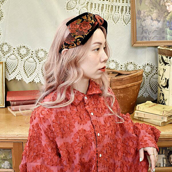 【今だけ▽全品15%OFFクーポン|28時間限定】 かわいい カチューシャ 花柄 Barairo no Boushi リボン 別珍 ロマネスクカチューシャ 秋冬 ヘッドアクセ バラ色の帽子 大きなリボン 日本製 全2色 女性 プレゼント ギフト かわいい 帽子 パーティー ヘア小物