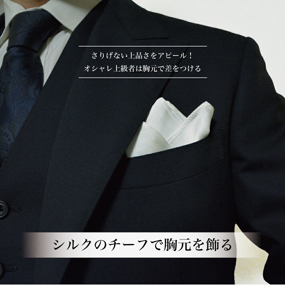 ポケットチーフ チーフ シルク 白 ハンカチーフ ハンカチ メンズ 結婚式 シルク100% 無地 光沢あり 大判 胸 ポケット 送料無料