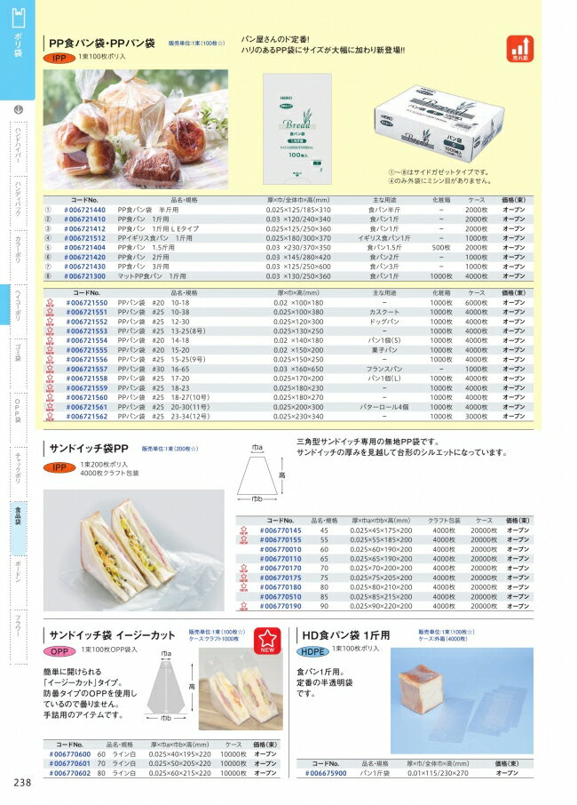 PP食パン袋 1.5斤用 100枚入 #006721404 バラ販売 シモジマ