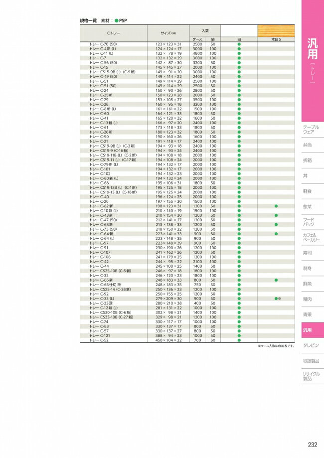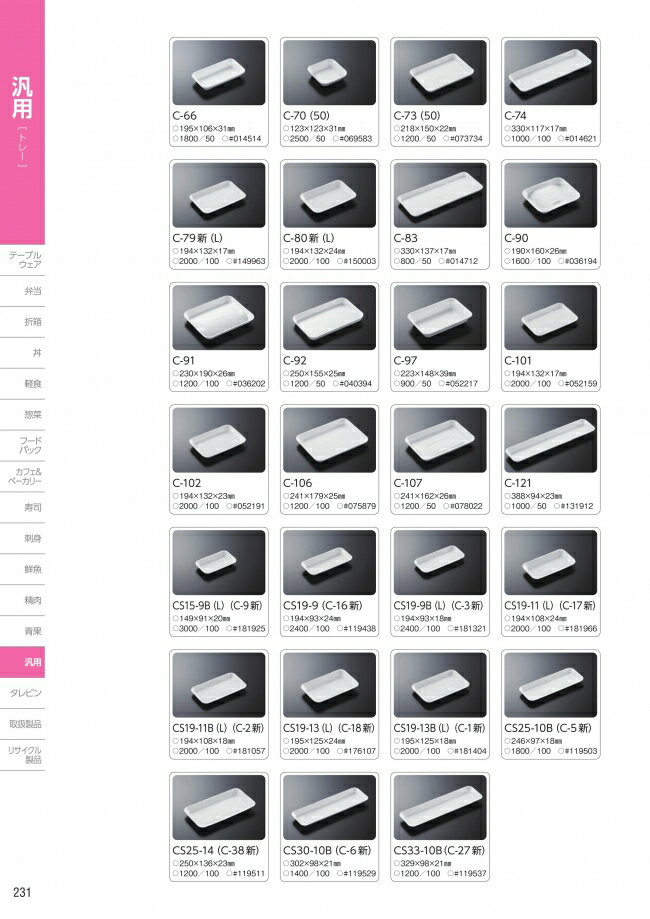サイズ:195×125×18mm 商品説明材質:PSP(ポリスチレン)特性:PSを高発泡させた軽量素材です。現在、食品トレーとして最も多く利用されています。耐熱温度:80℃電子レンジ:×耐油性:△保温・断熱性:○耐寒性:○※この商品は百貨店、デパート、スーパーなどへのお届けはできません。※取り寄せ商品の為、キャンセルや返品はお受けできません。