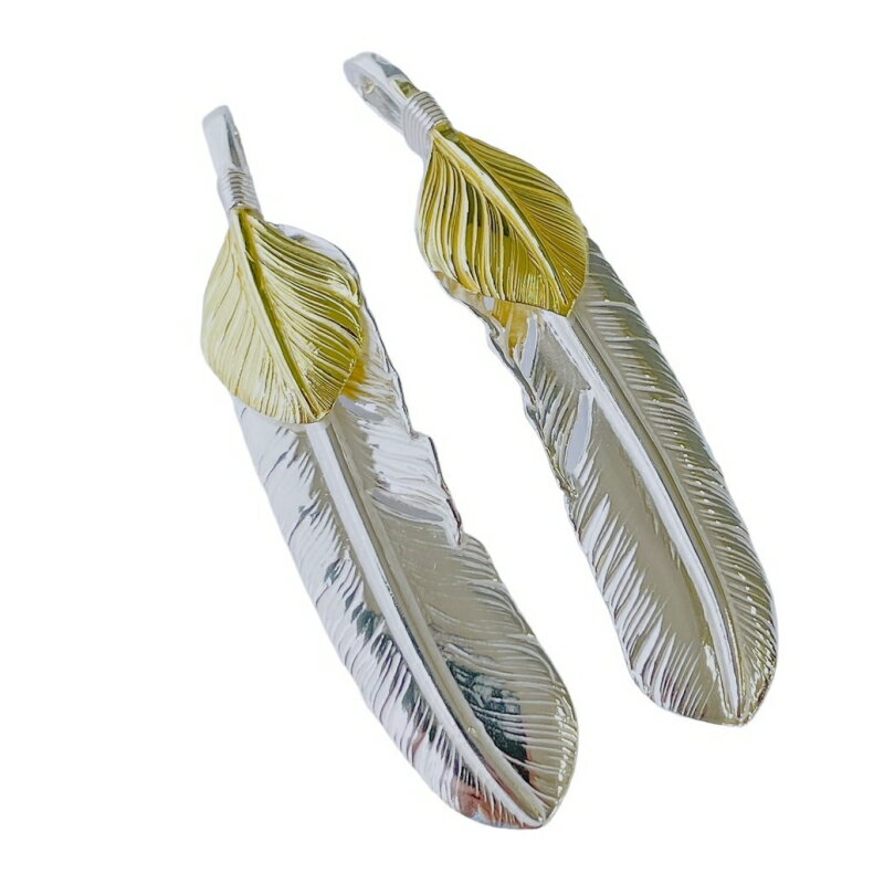 18金上金特大フェザー 特大フェザー シルバー925 羽 モチーフ パーツ 羽根 ペンダントトップ ペンダントヘッド ネックレストップ ギフト 贈り物 プレゼント