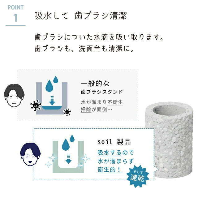 soil 日本製 珪藻土 歯ブラシスタンド 歯ブラシホルダー トゥースブラシ スタンド mini ミニ B130 【 ソイル 収納 あさイチ NHK 水濡れ防止 洗面台 清潔 ハブラシホルダー はみがきほるだー 】