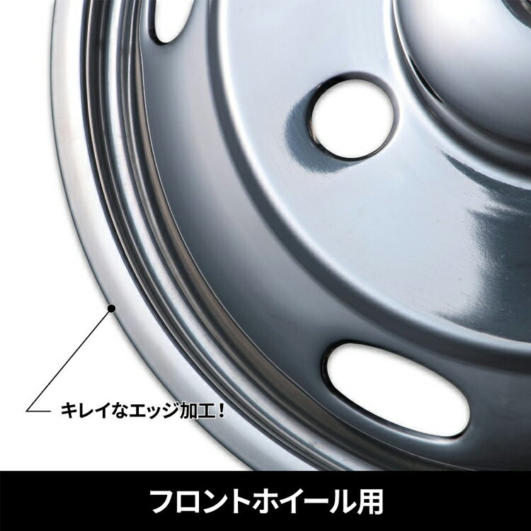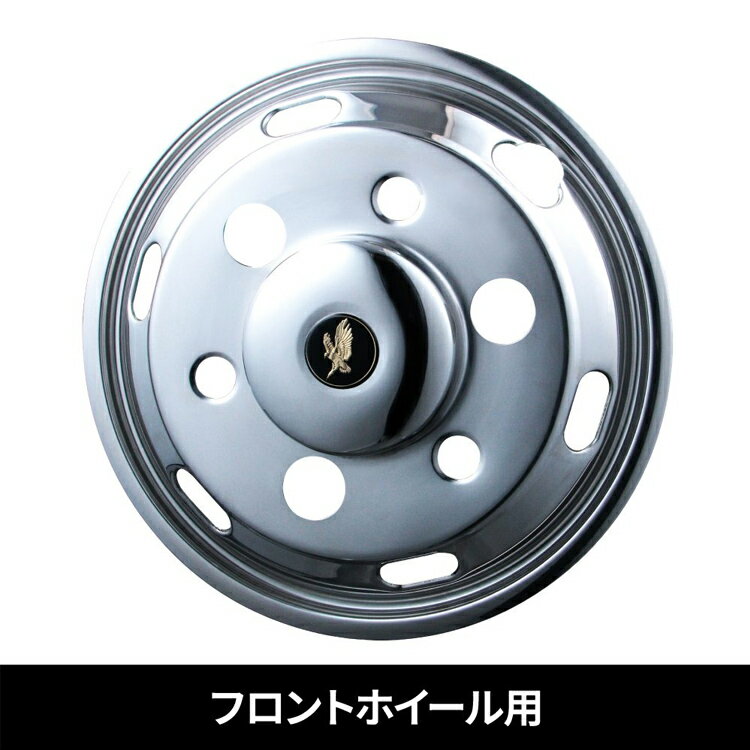 ホイールライナーがリニューアルされ光沢感と加工技術がUPして登場。 ブラックカラーの「金鷲」エンブレムは高級感を演出します。 フロント&リア、ナットカバー1台用SET。ステンレス製。 ステンレス(SUS304)製で美しく輝き耐久性も抜群!! 鉄ホイールの上から被せるだけ。 足元を売る櫛来演出し、イメージをがらりと変えるホイールライナー。 ホイル―カバーと異なり、特にリアは立体感が段違いに生まれ、深さと濃淡が反射を増殖し、更に美しさを引き立てます。 ■製品詳細 ○キャンター用 16インチ 商品コード:500227 適合車両:2tふそうキャンター用 材質:ステンレス(SUS304) JANコード:4976383457709 適合ホイールサイズ【500227】:・5.50K×16-115 チューブレスタイプ ナットサイズ38mm5穴 付属ナットカバー サイズ【500227】:38mm用 高さ:フロント48L、リア48L ステンレス(SU304)製 ○20/ブルーテックキャンター 16インチ 商品コード:500228 適合車両:2tふそうキャンター用(H22.11~) JANコード:4976383457716 適合ホイールサイズ【500228】:・5.50K×16-115 チューブレスタイプ ナットサイズ41mm5穴 付属ナットカバー サイズ【500228】:41mm用 高さ:フロント50L、リア63L ステンレス(SU304)製 ○20/ブルーテックキャンター 15インチ 商品コード:500229 JANコード:4976383466954 材質:ステンレス(SUS304) 適合ホイールサイズ:・15×5J 115-8C チューブレスタイプ ナットサイズ41mm5穴、 付属ナットカバー サイズ:41mm用 高さ:フロント50L、リア63L ステンレス(SU304)製 ○1.5T 20キャンターガッツ用 15インチ 商品コード:500225 適合車両:ふそう1.5t'20キャンターガッツ用(R2.11~) JANコード:4976383466947 材質:ステンレス(SUS304) 適合ホイールサイズ:・15×5J K3A 108-7C ナットサイズ27mm6穴、 付属ナットカバー サイズ:27mm用 高さ:フロント34L、リア43L ステンレス(SU304)製 ※20キャンター1.5tガッツ専用(令和2年10月以前のキャンターには適合しません。刻印が同じでも形状が異なる場合がございます。) ○エルフ用 16インチ 商品コード:500226 JANコード:4976383457693 材質:ステンレス(SUS304) 適合ホイールサイズ:・5.50J×16-116.5 チューブレスタイプ ナットサイズ41mm5穴 付属ナットカバー サイズ:41mm用 高さ:フロント50L、リア63L ステンレス(SUS304)製 セット内容【共通】:フロントカバー×2 リアカバー×2 リアハブカバー×2 フロントナットカバー×10 リアナットカバー×10 ※ホイールサイズを必ず確認してください。 ※4WD車不可 ※アルミホイールは取付不可 ※ナットカバー以外の各パーツの単品販売の設定はございません。