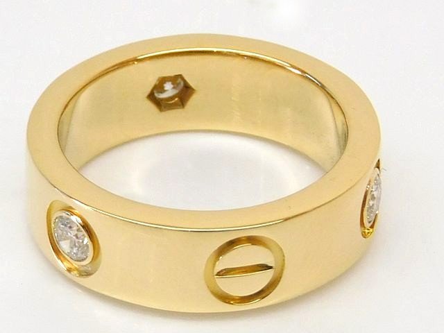 新品同様 カルティエ リング ■ ハーフダイヤ ラブリング 6号(46) K18 YG イエローゴールド レディース 指輪 CARTIER □7H7I マキム100