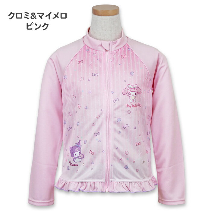 ラッシュガード 女の子 キッズ 子供 サンリオ 110 120 130cm 長袖 フードなし 前開き ファスナー 幼稚園 保育園 小学生 子ども こども 水着 かわいい おしゃれ キャラクター クロミ