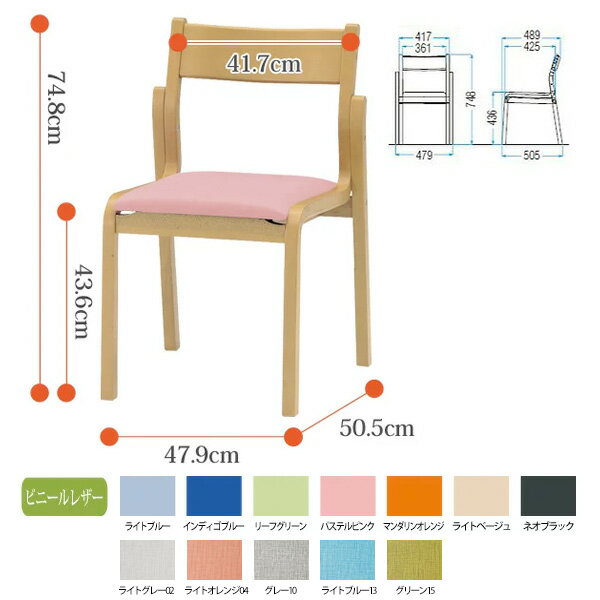 介護椅子 FKB-4L W479xD505xH748mm ビニールレザー 肘なし デイサービス 老人ホーム 福祉施設 介護施設用ダイニングチェア 病院 福祉施設 介護施設の椅子