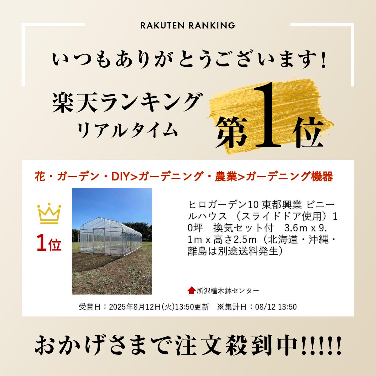 ヒロガーデン10 東都興業 ビニールハウス (スライドドア使用)10坪 換気セット付 3.6mx9.1mx高さ2.5m(北海道・沖縄・離島は別途送料発生)