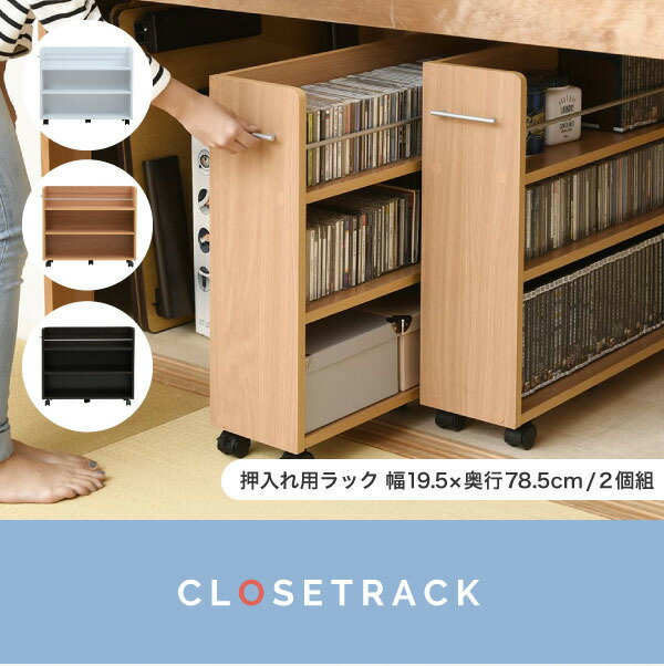 押入れ 収納 ラック 本棚 2個セット 幅19.5 奥行78 .5 キャスター付き 隙間 スリム ワゴン 棚 3段 大容量 CD DVD 本 漫画 整理 収納 スライド 収納庫 おしゃれ jk-sgt-0130 あす楽