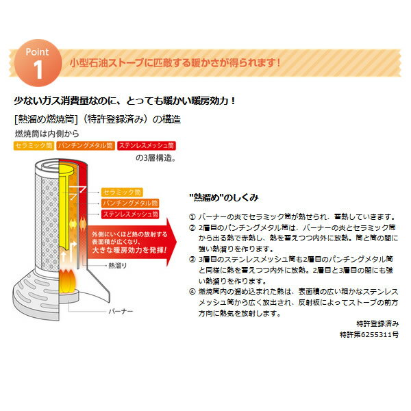 ■ イワタニ ■※カセットガスは別売です。◆ 主な特長 ◆■小型石油ストーブに匹敵する暖かさ■家の中のさまざまなシーンで大活躍リビング/ダイニング/和室それに防災にも◆ 主な仕様 ◆本体サイズ幅349×奥行280×高さ408mm重量約4.1kg(カセットガス含まず)材質本体:鋼板(粉体塗装)取っ手:ABS樹脂バーナー:ステンレス&セラミック器具せんつまみ:ABS樹脂ガス消費量約98g/h連続燃焼時間約2時間30分点火方式圧電点火方式安全装置不完全燃焼防止装置、立消え安全装置転倒時消火装置、圧力感知安全装置容器着脱方式マグネット方式簡易商品仕様シリーズ名:デカ暖ブランド名:イワタニメーカー型番:CB-STV-DKD代表カラー:ホワイトストーブ・ヒーターのタイプ:カセットガスストーブストーブ・ヒーターの燃料:ガス最大適用畳数(鉄筋):7畳最大適用畳数(木造):5畳使用ガス種類:カセットガスカラー:ホワイトブランド名(カナ):イワタニシリーズ名(カナ):デカダン