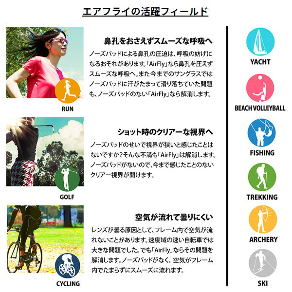 【12/1限定エントリーで当店全品最大P7倍】ZYGOSPEC ジゴスペック AirFly エアフライ スポーツサングラス AF-301C-3-5WV 鯖江ジャパン【KK9N0D18P】