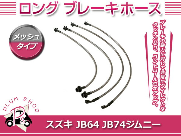【送料無料】 スズキ ジムニー ジムニーシエラ JB64 JB74 ロング ブレーキホース 4本セット ステン レス メッシュ 純正比 約50mm 2インチ〜4インチ用