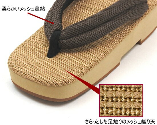 信貴 男性用 下雪駄(げせった) メッシュ織り天 メッシュ鼻緒 ブラウン 日本製 8寸6分