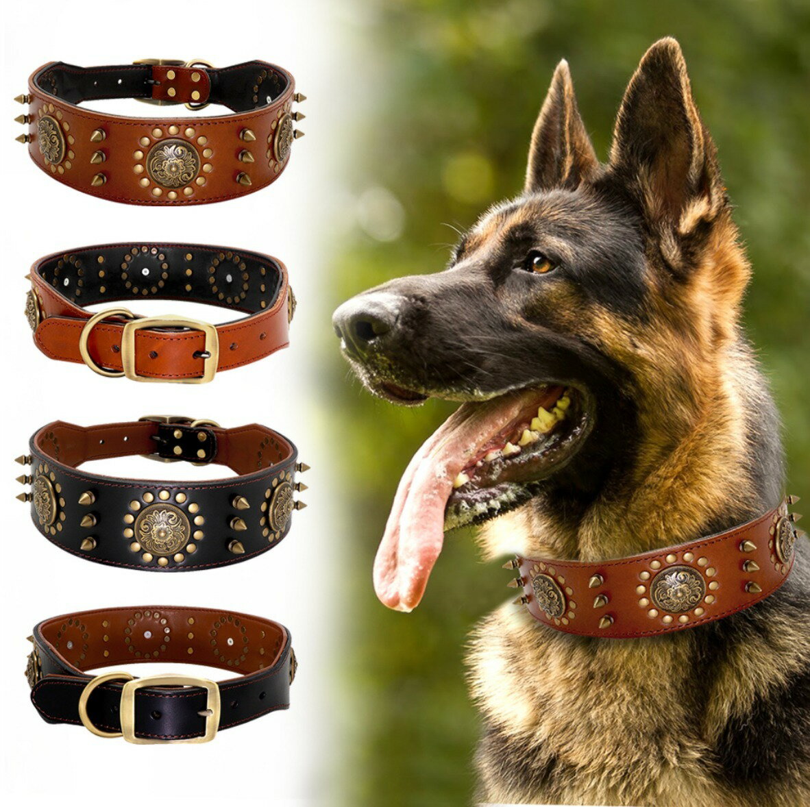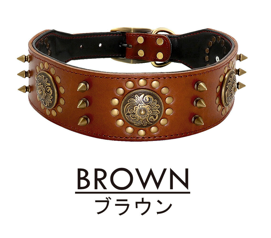 全2色! 本革・スパイク&スタッド・ドッグカラー 首輪 中型犬 大型犬 ワイルド パンクスタイル ヴィンテージ ファッショナブル 2サイズ! ペットトレーニング 咬傷防止 日本未発売!*