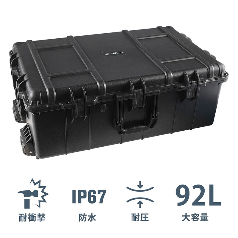 HTGベーシック ハードケース 防水キャリーオンケース 一眼レフカメラ レンズ ドローン ピストルなどに適用 キャスター付き 92L (Standardモデル)