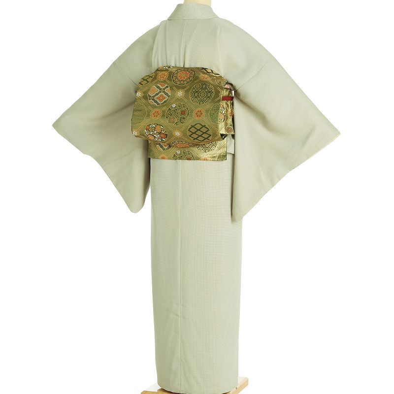 高級化繊の東レシルックの着物です。正絹に引けを取らない生地感、着心地で本物志向のお客様にもご満足頂ける品です。淡い緑色の角通しです。(角通し=小さな格子文様の江戸小紋)。堅苦しくならずセミフォーマルとしてお使いいただけます。お子様の七五三や、入学式、卒業式、卒園式、お茶会、披露宴、パーティに幅広くご利用頂けます。お客様の身長が、適応身長であることをお確かめくださいその際、ご体型に合った欄でご確認ください。標準体型の方 [A体] 適応身長158〜163cm※上限163cmに近い方はご体型によっては丈が短くなる場合がありますスリム型の方 [Y体](ヒップ小さめの方)ぽっちゃり型の方 [AB体](ヒップ大きめの方)適応身長158〜163cm適応身長156〜161cm※ただしバスト96cm、ヒップ99cm以内サイズについての詳細はこちらサイズM身丈131cm裄67cm色緑種類袷着物 / 小紋(江戸小紋)素材ポリエステルフォーマル度****延長料金(1日延長につき)1500円/日海外利用割引について >予約状況サイズ違いは下記からお選びくださいXSサイズ 適応身長 149〜154cmSサイズ 適応身長 153〜158cmLサイズ 適応身長 163〜168cmXLサイズ 適応身長 168〜173cm 1日ご利用のハイグレード着物レンタルプラン(ご利用2日前にお届け、ご利用翌日返却)です。着物、名古屋・袋帯(お太鼓タイプ、簡単着付け対応)、帯揚げ、帯締め、草履、着付け用品(半じゅばん、ステテコ、たびソックス、帯板、帯まくら、だて締め、えり芯、腰ひも)一式セットでお届けします。帯揚げと帯締めは代替品に変更になる場合がございます。お好みの袋帯・名古屋帯に無料で変更できます。 着物は洗えるプレタ着物を用いています。期間延長ご希望の場合は、1日に付き1,500円(税込)で延長可能です。年末年始お正月期間は追加料金がかかります。お申し出なく返却が遅れた場合は延滞料として1日当たり別途3,000円(税込)ご請求しますので予めご承知願います。レディースメンズセミフォーマルスマートカジュアルカワイイ系カジュアル訪問着振袖はかま小紋単衣夏物浴衣春秋冬用初夏・初秋用夏用着物ゆかたXSSMLXL