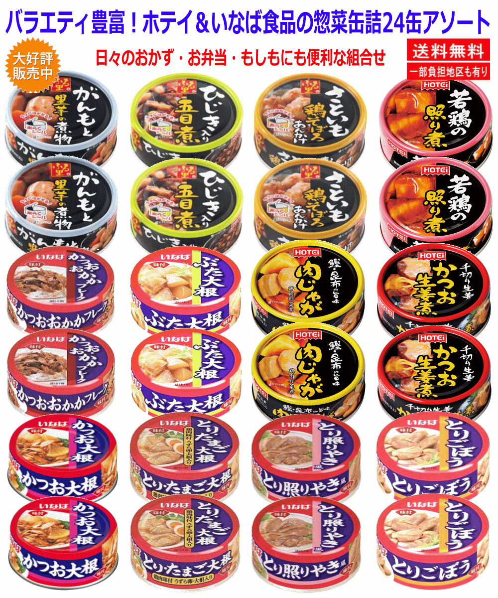 【缶詰】バラエティ豊富!ホテイフーズ&いなば食品の和惣菜缶詰24缶アソート おかず・お弁当・防災備蓄に 関東圏送料無料