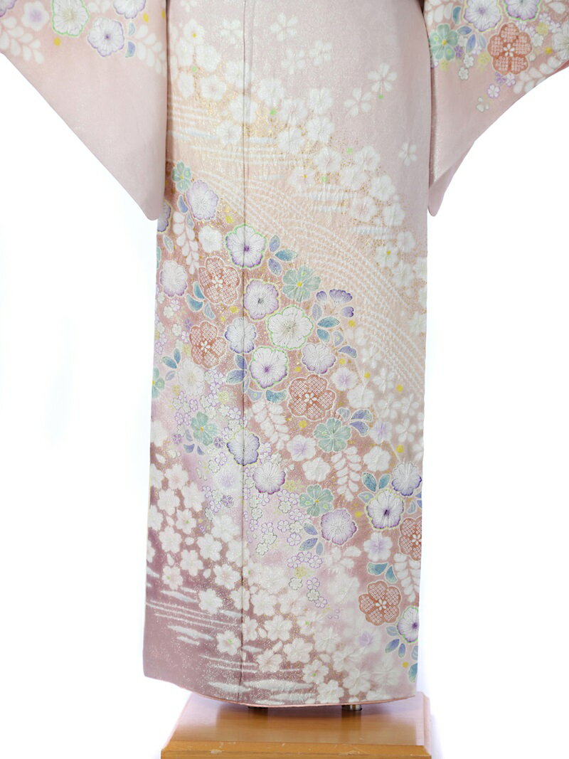 【レンタル】 桂由美 YUMI KATSURA 訪問着 レンタル フルセット レンタル訪問着 着物レンタル レンタル着物 正絹 辻が花 ピンクベージュ 金通し ラメ感 150cm~170cm位まで 足袋プレゼント 8AD379