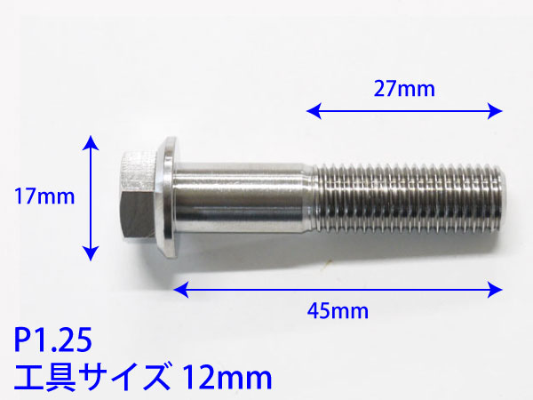 商品説明>商品名64チタンフランジボルト M10×45mm P1.25 1本商品番号TIBN045M1A商品コメント汎用の64チタン合金製のフランジボルトです。焼き色は入れてありませんのでナチュラルなチタンカラーでシックな装いです。素材はチタン合金のTi-6Al-4V通称64チタンを使用しております。非常に軽量で錆びないため宇宙産業や航空産業など幅広く採用されている素材ですので安心してご使用いただけます。ネジ部分は鍛造後に転造、ヘッド部分は鍛造後に精密に切削加工しております。そのため工具のかかりもよく、ヘッド部分の型崩れもかなり少なくなります。ボルトをチタンに変更することで軽量化や錆びないこと、耐久性、強度等メリットばかりで交換して損はありません。1本での販売となります。カラーナチュラル素材64チタン Ti-6Al-4V GR5付属品-サイズネジ長45mm M10 P1.25 フランジ径17mm 工具サイズ12mm適合車種汎用品注意事項ボルトは必ず規定トルク以内で締め付けてください。車種ごとの規定トルクは当店では把握しておりませんので、必ず車種別のサービスマニュアルを確認してください。アルミ製品等に取り付ける場合は、かじり防止のためアンチシーズやスレッドコンパウンドなどを必ず使用してください。取扱説明書は付属しておりません。