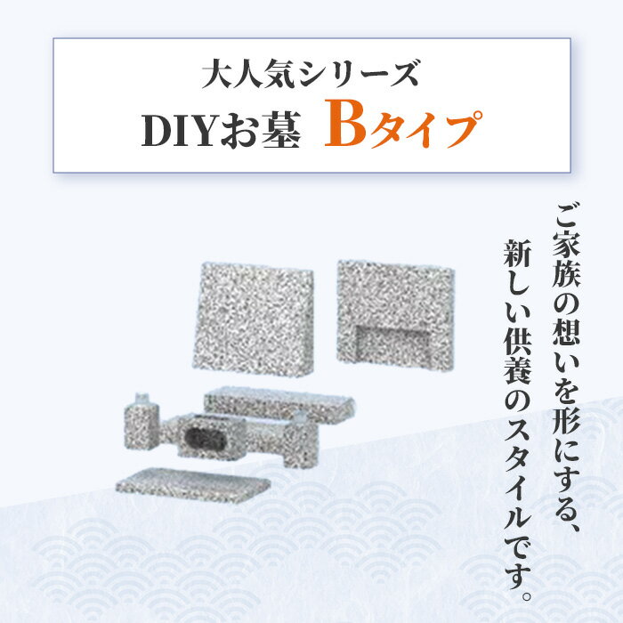 【大人気シリーズB】DIY|お墓 墓石 洋型 コンパクト シンプルなデザイン 自作組立キットB(中)本格派 正面文字彫付き 白御影石 だいもんオリジナル品 重さ:126kg 6分割で宅配