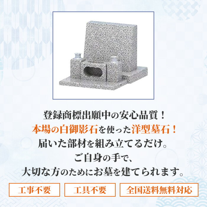 \ 自分でつくるお墓 / ─── 洋型白御影石 ─── 登録商標出願中の安心品質! 組立かんたん・費用を抑えたい方におすすめ ★ ここがポイント ★ ・文字彫付き(正面) ※レイアウト確認後に彫刻いたします ・送料無料(玄関までお届け) ※一部地域・離島を除きます ・全体重量:約106kg(6分割で配送) → 大人2人+一輪車があればOK! ・工事希望の方は現地写真と住所をご連絡ください。 無料でご相談いただけます! ■ サイズ・重量 ■ ・幅:約57.6cm ・奥行:約69.7cm ・高さ:約47.0cm ・重さ:合計 約126kg(6分割) ★ こんな方におすすめ! ・自分の手で心を込めて供養したい方 ・石材店に頼まず費用を抑えたい方 ・墓じまいも、ご自身で簡単にできます ・全国どこでも対応したい方 \ 今すぐご検討ください! / ご不明点はお気軽にご相談ください。 TEL:0120-999-148 ━━━━━━━━━━━━━━━━