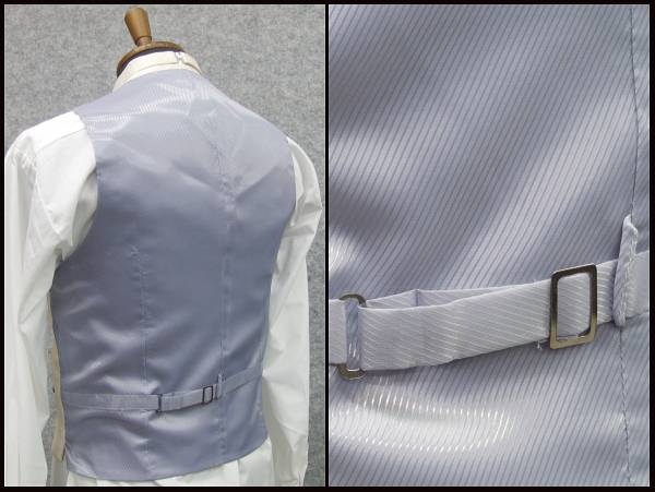 ◆ Formal Collection ◆ Vest & Ascot Tie [バニラ・生成り] フォーマルスーツやブラックスーツとコーディネイトして気軽にドレスアップできる ブライトポリエステルの交織による光沢のある生地を使用したすっきりシルエットの フォーマルベストと共生地を斜め方向に使用したアスコットタイのセットです。 最新の細身のモデルになります ◆結婚式、パーティーや二次会のコーディネートに♪ ◆略礼服、ブラックスーツにお薦め♪ ※実店舗、他サイトでも販売のため、稀にご注文商品がない場合がありますのでご了承ください。 ※この商品は外部倉庫に保管している商品ですので、土日祭日をはさみますと通常より2〜3日 発送が遅れる場合があります。お急ぎの方は質問欄などでご連絡確認のうえご落札ください。 商品詳細 ベスト&アスコットタイセット 色 バニラ(光沢あり)ラメ入 柄 フランス綾風にドッド柄 表地(混率) ポリエステル100% 裏地・後身 ブルーグレー ポリエステル 100% 仕様 前釦(くるみ)5個、腰左右箱ポケット、後尾錠付 アスコットタイ ベスト生地の綾を縦方向(縦縞)に使用ラインストーン入りのスカーフリング付 一点フック掛け