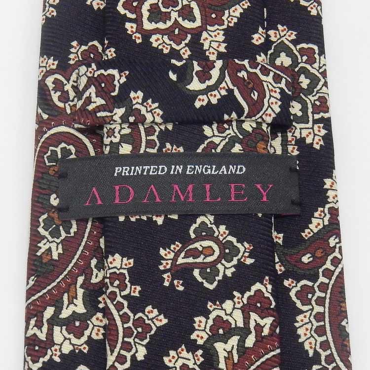 英国ADAMLEY(アダムリー)生地使用/京都産▼プリントネクタイ ネイビー×ワイン ペイズリー シルク100% 日本縫製 KV-ADM12