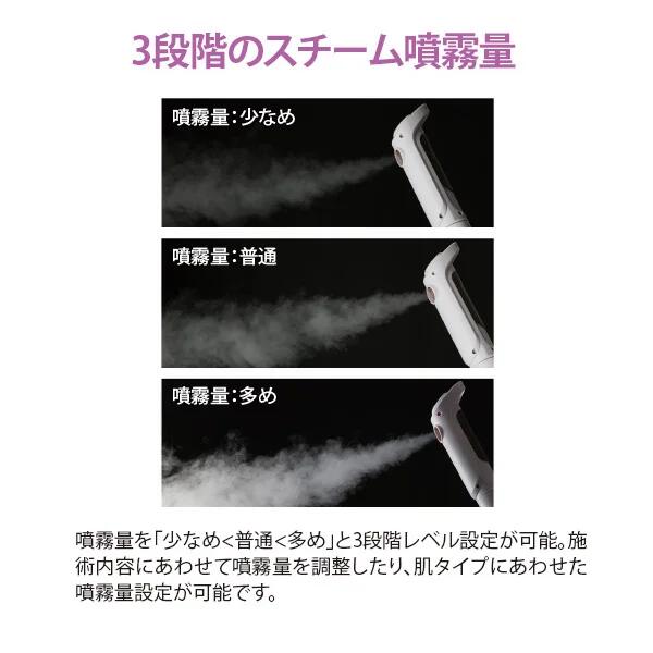 オゾンフェイシャルスチーマー ホワイト 【安全装置】【タイマー機能】【保温機能】サロンで求められる9機能を搭載した高機能スチーマー サロンワークで求められる、9つの機能を搭載したフェイシャルスチーマーです。 空焚き防止、お水入れすぎ防止などの安全機能に、アロマオイルの使用や除菌機能など、あるとうれしい機能を網羅しました。 噴霧口は360°、アームも140°調節可能。 高さも80cm~105cmで調節できます。 ●機能/性能 ・スチーム量調節機能:3段階でスチームの噴霧量を設定できます。 ・アーム角度調節機能:アームの角度を140°で調節できます(フリーストップ式)。 ・噴霧高角度調節機構:噴霧口の角度を360°で調節できます(フリーストップ式)。 ・アロマ機能:アロマオイルを使用して、スチームに香りをつけることができます(アロマオイル別売り)。 ・タイマー機能:最長30分(1分単位)のタイマーを設定して、噴霧を自動でストップできます。 ・保温機能:最長90分(5分単位)でお水の保温ができます。 ・オゾン除菌機能:オゾンとUVでクリーンなスチームを噴霧できます。 ・空焚き防止安全装置機能:ビーカーの水位が一定の水位より低下すると自動的に電源が切れます。 ・お水入れすぎ防止機能:お水を所定の量よりも入れすぎると自動的に電源が切れます。 使用方法 1.専用ビーカーを本体に取り付けます。 2.精製水を専用ビーカーに入れます。 ※おすすめの大容量でお得な精製水(別売) 高純度精製水 20L 3.本体の電源を入れます。 4.時間・レベル・保温設定をします。 5.ご使用後はストップボタンを押してから、電源プラグをコンセントから抜き、ビーカー内の残留水を捨てて洗浄してください。 【エラーコード】 ビーカー内精製水の量が多すぎたり少なすぎたりした場合には下記のエラーコードが表示されます。表示されましたら、精製水の量を調整してください。 E1:ビーカー内の精製水が少ない時 E2:ビーカー内の精製水が多い時 重量 約4.5kg 商品サイズ ●高さ:約80~105cm(アーム除く)、117~163cm(アーム含む) ●アームの長さ:70cm 梱包外寸 79.4cm×38cm×27.4cm 消費電力 770W 電源定格 100V 50/60Hz 備考 ●ビーカー容量:800mL ●スチーム開始までの時間:約10分 ●最大噴霧時間:約38分 ●タイマー設定:最長30分(1分単位で調節可能) ●保温時間設定:最長90分(5分単位で調節可能) ※誠に勝手ながら、パネルデザインをリニューアルいたしました。デザイン以外の変更はございません。 ・中国製 ・商品区分:フェイシャルスチーマー ・広告文責(社名:癒し工房・連絡先電話番号:06-6636-3800)