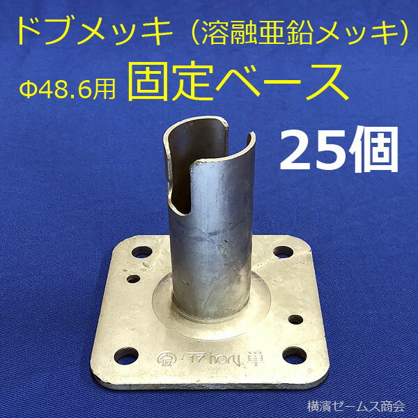 【固定ベース・ドブメッキ(25個セット)】建設仮設足場資材の定番品。溶融亜鉛メッキ仕上で防錆(サビ)効果抜群。住宅足場,沿岸現場,潮風対策,塗装現場,吹付,造園,果樹園,農業資材としても。使いやすい120角。