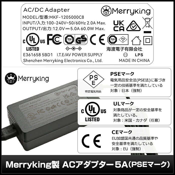ACアダプター 汎用電源 12V 5A 60W 5.5mm 2.1mm PSE認証 1年保証