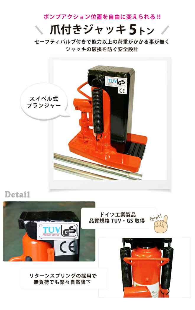 爪ジャッキ5トン 爪付ジャッキ 油圧ジャッキ 重量物用 6ヶ月保証 NJ-5 KIKAIYA