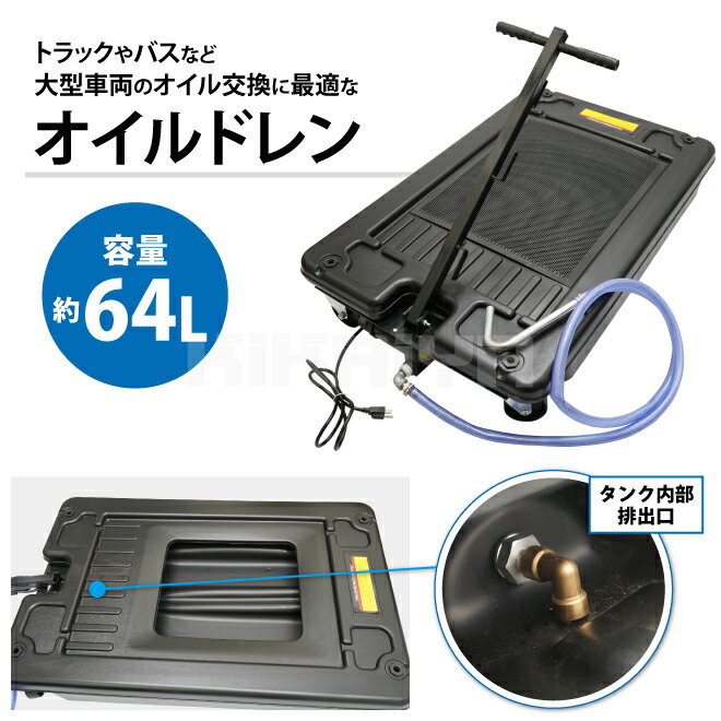 オイルドレン オイルドレーナー 64L トラック 電動ポンプ AC100V 低床型 ドレンカート ドレンパン ODE-17 KIKAIYA
