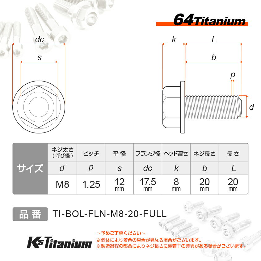 チタンボルト M8×20 P1.25 ゴールド 単品 1本売り 64チタン フランジボルト 全ネジ Ti-6Al-4V Gr5 チタン合金 バイク パーツ 自転車 ボルト M8 カスタム ドレスアップ 旧車 レストア 修理 部品