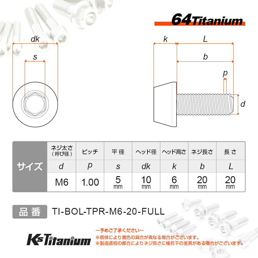 チタンボルト M6×20 P1.0 ブラック 単品 1本売り 64チタン テーパーボルト 全ネジ Ti-6Al-4V Gr5 チタン合金 バイク パーツ 自転車 ボルト M6 カスタム ドレスアップ 旧車 レストア 修理 部品