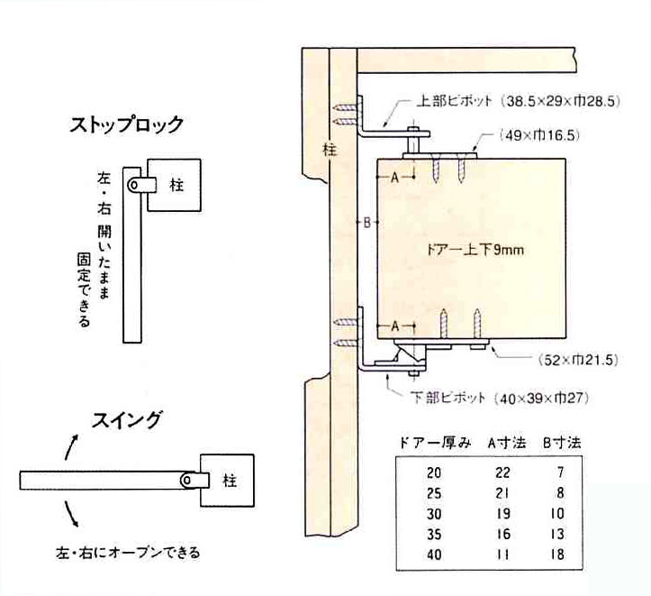 カウンター部等の小型扉、両開きウエスタン扉等に 堀込不要!簡単取付 10kg以下の軽量扉にご使用ください 扉の自重により閉まるタイプ 扉厚: 20mm〜44mm 材質(金属部品):ステンレス・ジュラコン ガラクロームメッキ スタンダード #5250 です