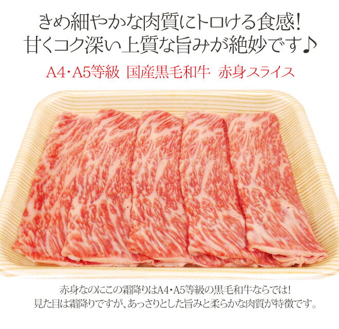 ”国産黒毛和牛 赤身スライス” A4・A5等級 約1kg(約250g×4pc) 送料無料