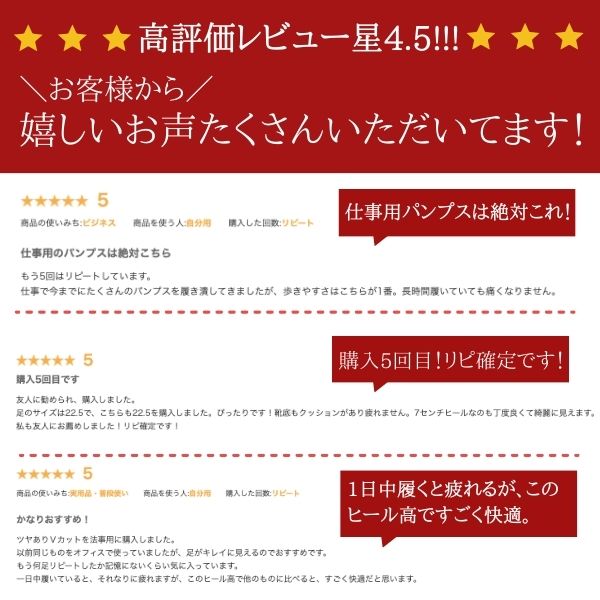 impact material インパクトマテリアル impact materialから、高機能インソールを搭載した7cmヒールの美脚フォーマルパンプスが登場。 ・《MADE IN JAPAN》の安心品質で長く使える定番デザインのブラックパンプス。 ・歩きやすさを追求したreduction system(衝撃軽減システム)インソールで、 歩行の衝撃や足にかかる負担を軽減!疲れにくく痛くないので快適な履き心地です。 POINT【1】フロントサポート ●負担のかかりやすいつま先〜中足骨部分への衝撃を吸収。 ヒール疲れを緩和し、足の前すべりも軽減します。 POINT【2】アーチサポート ●柔らかいアーチクッションパッドが土踏まずに優しくフィットし、 疲れやすいアーチ部分を心地よくサポート。体圧も分散させます。 POINT【3】ヒールカップ ●土踏まず〜踵部分を囲んだ踵パットで程よくホールド。 着地の衝撃を吸収し、グラつきも軽減。安定した歩行をサポート。 ●アウトソール部分はゴム製で細かい溝が刻まれているノンスリップ仕様。 滑りやすい雨の日やツルツルした床でも安定した歩行ができ、安心。 ●ヒールは少し高めの約7cmで、足をスラッと長くみせる美脚効果アリ。 飽きのこない定番のシンプルなデザイン。シンプルだから色んなシーンに対応可能。 オフィス・通勤・就活・冠婚葬祭に最適。 ・[662]Vカットツヤありは本革タイプ。高級な足元を演出。特別な日をより華やかに彩る一足です。 ■商品詳細 ■ブランド impact material インパクトマテリアル ■商品名/品番 IM-6320 IM-6330 IM-6620 IM-6630 IM-662 IM-6120 IM-6130 IM-6220 IM-6230 IM-622 ■カラー [6320]ブラック 黒色 [6330]ブラック 黒色 [6620]ブラック 黒色 [6630]ブラック 黒色 [662]ブラック 黒色 [6120]Uカットツヤあり 5.5cm 黒色 [6130]Uカットサテン 5.5cm 黒色 [6220]Vカットツヤあり 5.5cm 黒色 [6230]Vカットサテン 5.5cm 黒色 [622]Vカットツヤあり 5.5cm 黒色 ■取扱いサイズ 21.5cm 22cm 22.5cm 23cm 23.5cm 24cm 24.5cm 25cm ■素材 《アッパー》合成皮革 《アウトソール》合成底 [662のみ] 《アッパー》本革 《アウトソール》合成底 ■ワイズ(横幅) 標準的な2E(EE)相当 ■靴の詳細 (23.5cm採寸) 《ソール高》接地面より約 7.0 cm [5.5cmヒールのみ]約5.5cm 《履き口までの高さ》約 13.0 cm [5.5cmヒールのみ]約 11.5cm(ソール部分も含む) 《重量》片足 約 173 g [5.5cmヒールのみ]約 150g ■サイズについて 細身、普通の方→「標準サイズ」 甲高、幅広の方→「0.5cm大きめ」 こちらのアイテムの足入れは標準です。 キーワード パンプス リクルート 冠婚葬祭 7cm 7cmヒール ヒール高 オフィス 通勤 仕事 就職活動 就活 フォーマル パンプス フォーマル シューズ ビジネス 低反発 美脚 綺麗 キレイ お葬式 葬式 靴 仕事用 ブラック 黒 長時間 疲れない 疲れにくい 授業参観 コンサート コンクール インソール クッション 立ち仕事 営業 外回り 安定 Uカット Vカット 日本製 会社 仕事 走れる 結婚式 柔らかい きれいめ パーティ 7センチメートル 疲れない インソール